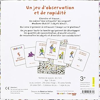 1 plateau recto-verso et plus de 300 cartes pour jouer à être le premier à retrouver les éléments dans la grande image !Ce jeu permet de développer les qualités d'observation, de concentration, de discrimination visuelle, de reconnaitre des objets et d'enrichir son vocabulaire...